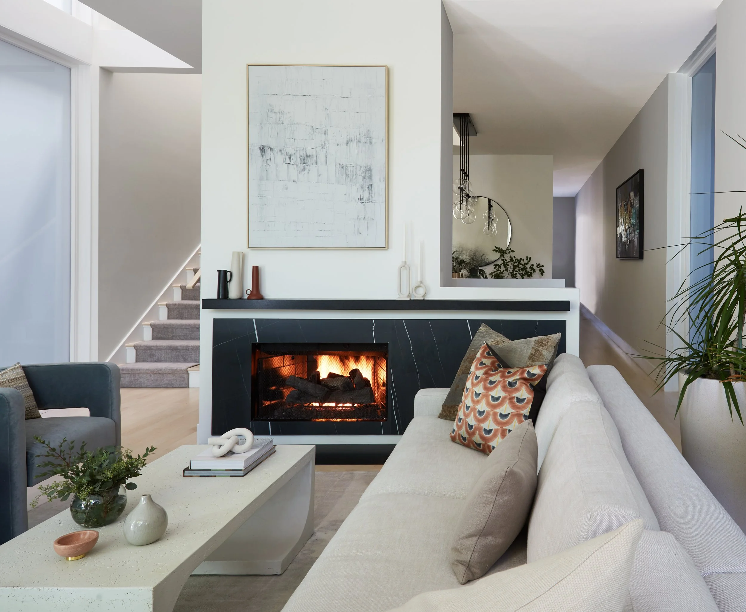 A custom-designed fireplace, a new wine room, and refurbished maple wood floors are the highlights